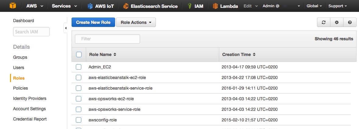 Now we need to create a role that will give trust permissions to Lambda and AWS IoT to execute actions on our behalf. To do this, save the following text as iot_lambda_role.json.