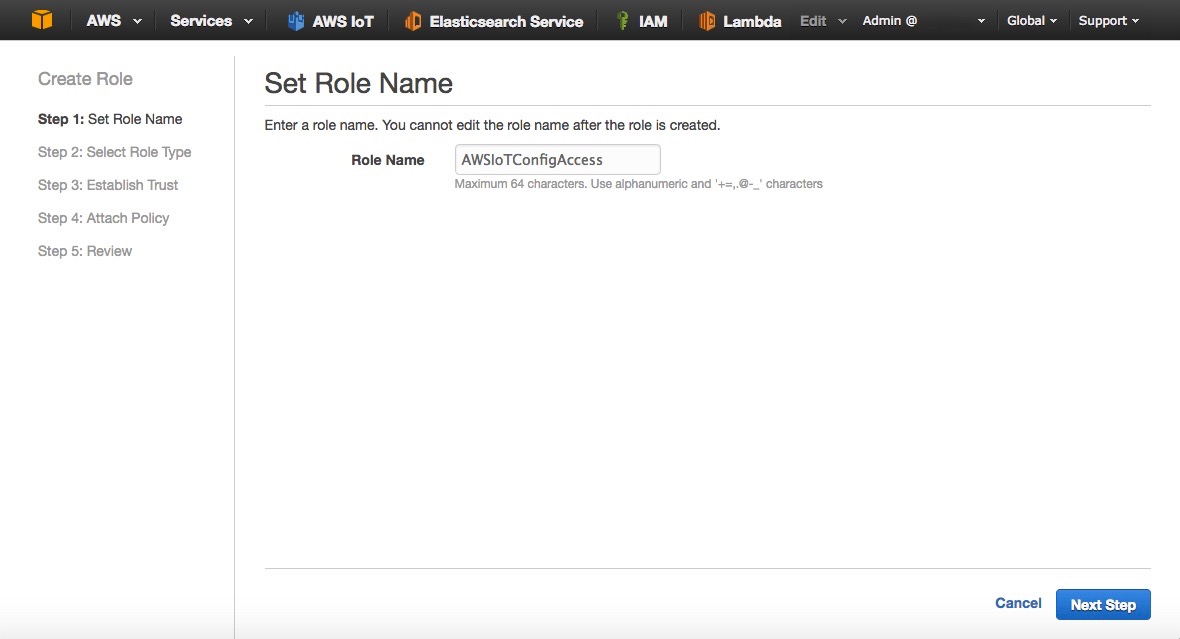 aws iam create-role --role-name iot_lambda_role --assume-role-policy-document file://iot_lambda_role.json